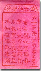 黄大仙灵签一百枝,这是最末一枝,虽为中吉,但有“宝物沉归底”之意,又有否极泰来、面临另一个循环之象,求得者,苦尽甘来,运势转弱为强,处处显现生机。