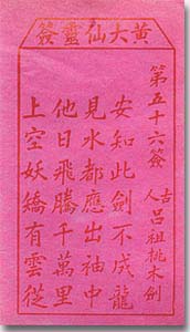 本签寓意吉祥,暗示一切都向好的方面发展。仙机见于签语的首两字――“安知”――怎么知道这把桃木剑不会成龙呢?将来修成正果,一见仙水,它就会化成一条龙,从吕祖的衣袖中飞腾而出,飞升千万里,空中还有彩云相伴随!