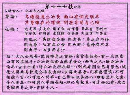 黄大仙灵签第七十七签:公冶长入狱 (中平灵签)