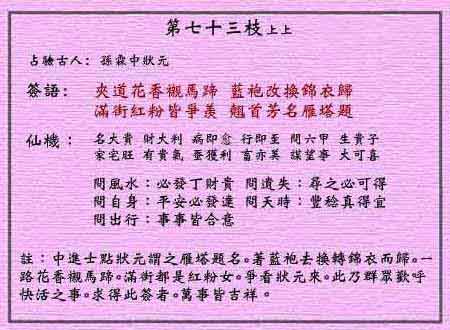 黄大仙灵签第七十三签:孙霖中状元 (上上灵签)