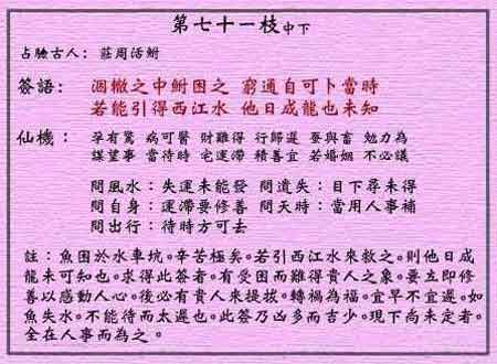 黄大仙灵签第七十一签:庄周活鲋 (中平灵签)