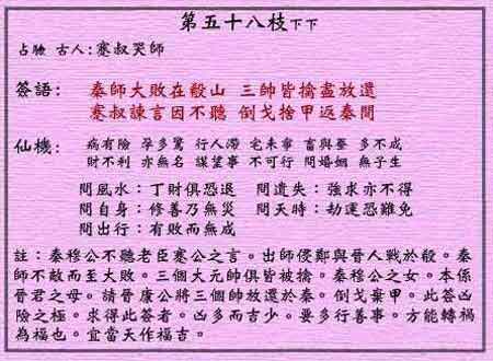 黄大仙灵签第五十八签:蹇叔哭师 (下下灵签)