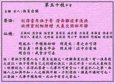 黄大仙灵签第五十签:伍员出关 (中吉灵签)