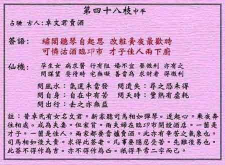 黄大仙灵签第四十八签:卓文君卖酒 (中平灵签)
