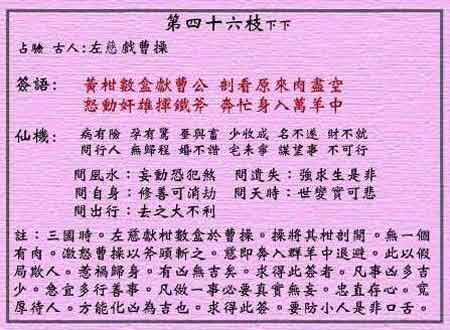 黄大仙灵签第四十六签:左慈戏曹操 (下下灵签)