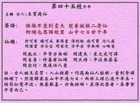 黄大仙灵签第四十五签:王质遇仙 (中平灵签)