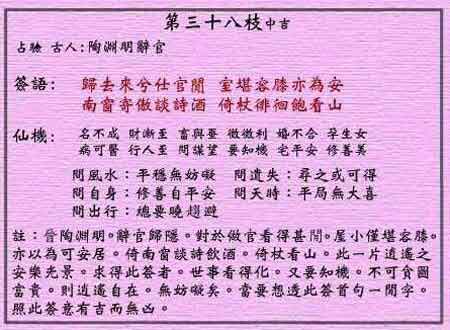 黄大仙灵签第三十八签:陶渊明辞官 (中吉灵签)