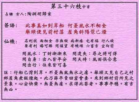 黄大仙灵签第三十六签:薛平贵归家 (中吉灵签)