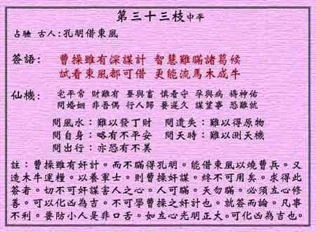 黄大仙灵签第三十三签:孔明借东风 (中平灵签)