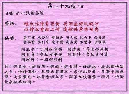 黄大仙灵签第二十九签:张翰思鲈 (中吉灵签)