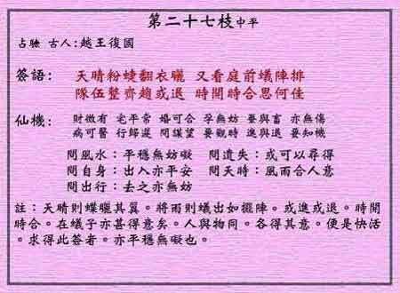 黄大仙灵签第二十七签:越王复国 (中平灵签)