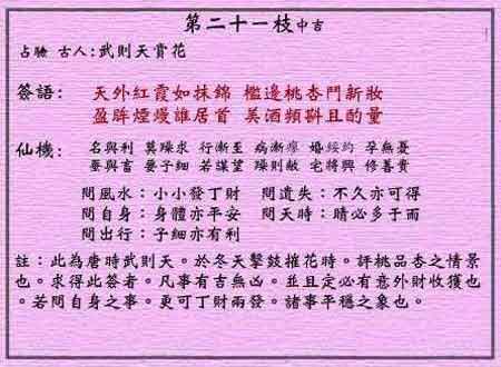 黄大仙灵签第二十一签:武则天赏花 (中吉灵签)