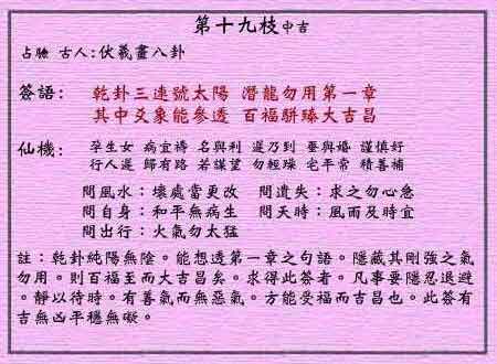 黄大仙灵签第十九签:伏羲画八卦 (中吉灵签)