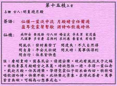 黄大仙灵签第十五签:明皇游月殿 (上吉灵签)
