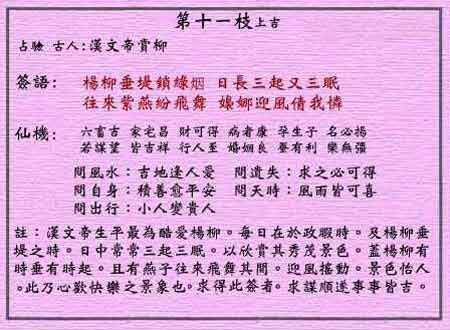 黄大仙灵签第十一签:汉文帝赏柳 (上吉灵签)