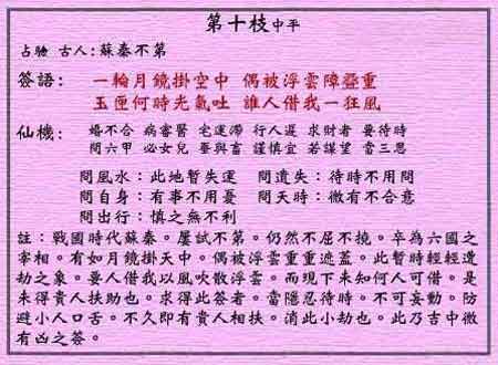 黄大仙灵签第十签:苏秦不第 (中平灵签)