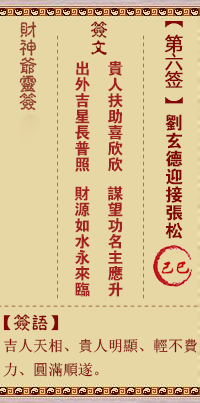 吉人自有天相,三国刘备,张松献四川地图与玄德,刘备兴师取四川,刘表献川刺降,备入川接位,为西蜀建国基地,应验东北贵人到家。此签吉星高照,化险为夷的含义。而且表示财源滚滚而来之兆。