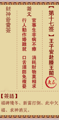 你很虔诚来求我指点迷津,所以帮你解答疑惑,一个人有得意的时候,也有失意的时候,就好比王子安少年时作滕王阁序,一挥而成,众人称奇夸赞,这乃是福至心灵,但坏运降临时,连荐福碑都被雷轰掉了,这是命运。所以一个人要知道进退,没有人一生都是好运的,也没有人一生都是坏运的。