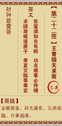 贫富须知自有时、功名婚事必待机、求谋渐候逢庚子、季夏交临事事宜。