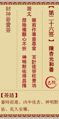 ´ËÇ©ÒÔ³ÂÐÓÔªºÍ·¬µÄ¹ÊÊ£¬ÓÃÆäʼÊܼ鳼¬è½Ï຦£¬¶ø²ðÉ¢Ô§Ñ죬µ«ÖÕÒòÉñÏÉÖ®Öú£¬ÓÖ¸´ºÏÍÅÔ²£¬À´°µÊ¾µ±ÊÂÈË£¬Õ¼ÊÂÏÈÓǺóϲ£¬Ä±Íû³õδ˳Ë죬ÖÕ±ØÓöÉñÏɹóÈË¡£Ç°Í¾ÏÈÏÕºó°²£¬ÆäÖÐËäÓмéÈËÏݺ¦£¬ÈÔ¿ÉÐ×Öл¯¼ª£¬¹ÊÒ˾²ÊØÇóÉñ×÷¸£¡£ÐݹÜÏÐÊ£¬ÄªÈÇÊÇ·Ç£¬Ð¡ÈË£¬Ç×½üÉÆÖªÊ¶£¬Éóʱ¶ø½ø£¬·½ÎªÉϲߡ£