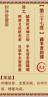 求神问事不会有差错,神明知道你有急事相问。看见秋天梧桐落叶飘落,但不须多久又可见庭前开满春天的花朵。这首签诗,用归乡似箭的心情,来譬喻你目前的处境。你要解决问题的心情,神明已经知道,不要急,只需多虔诚祈祷。不久之后。忧虑的事情会解决的。