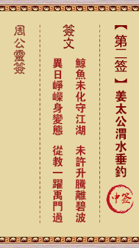 鲸鱼未化守江湖。姜太公之受难时也。为大鲸未变之象。凡事进退待时。不可轻举妄动。动则凶。静则吉。君尔也。得忍且忍。得耐且耐身不而忙。功名自在者。来日峥嵘蜕身时。一跃可过禹门者。