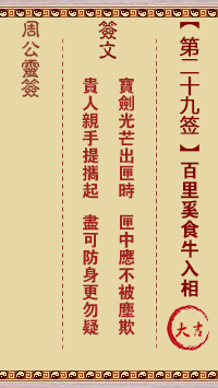 周公灵签第二十九签:百里奚食牛入相 大吉