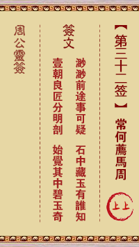 此签有”寻人捉刀”之意。奉劝当事人,凡事勿太依赖。属于自己本身份内的事,就不应麻烦别人,或干脆丢给别人去做。应能训练自己独当一面,尽量靠自己来解决问题。如果总是希望别人来帮忙,对于本身非但无所成长,得到的收获也不是属于自己的。唯有透过亲身对事物的体验与尝试,才能有办法真正去了解其中所蕴藏的奥妙之处。选择勇敢去面对,将会发现事情其实没有想像中那么困难。