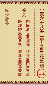 本签者。日暖风和之象。凡事大吉大利者。君尔之门庭清吉。梦也祯祥。古人劝之。积善之家庆有余。家运大吉大利也。积善者。先由心正。不存邪。助人为乐。修身。布施之谓。因之。讼理婚成蚕又熟。易言之。日暖风和百花大发事莫疑迟从今显达。