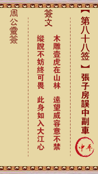 本签者。木虎虚惊之象。凡百事宜守待时方吉安。千万叵倚强凌弱。远望威容意不禁者。即使木虎不必畏惧。但己身如同入大江心。岌岌可危。必须防贪求不已。生祸福无不自求者。必慎之。易言之?t头点雪耳边过风可宜作福前凶后吉。