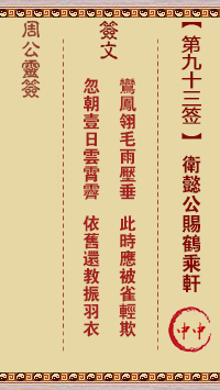 周公灵签第九十三签:卫懿公赐鹤乘轩 中中